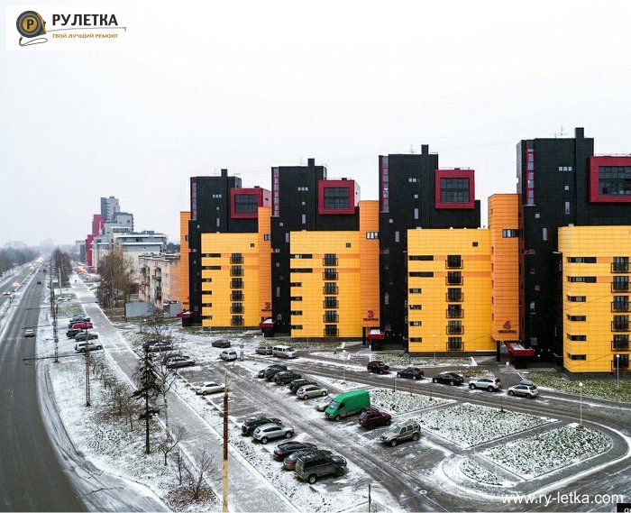 В городе Петрозаводск появился новый микрорайон. Очень приятное глазу яркое строение.